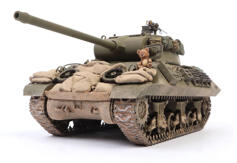 Although Tamiya includes some stowage in the form of packs and rolls, I decided to add more. I was drawn to Sol Resin Factory’s Item No. MM685 “Accessories Set for M10” mainly because of the teddy bear perched on the front hull.