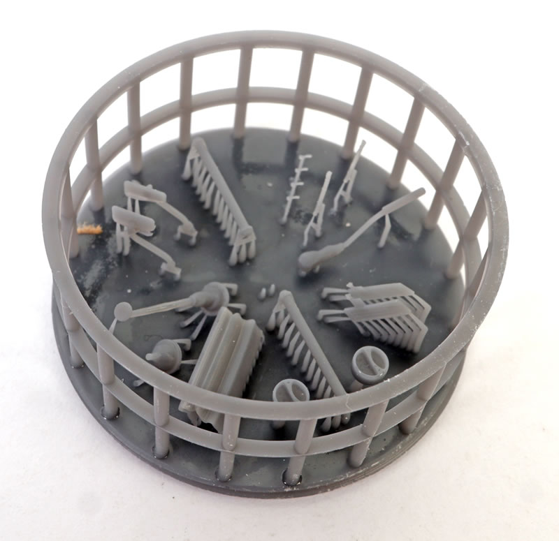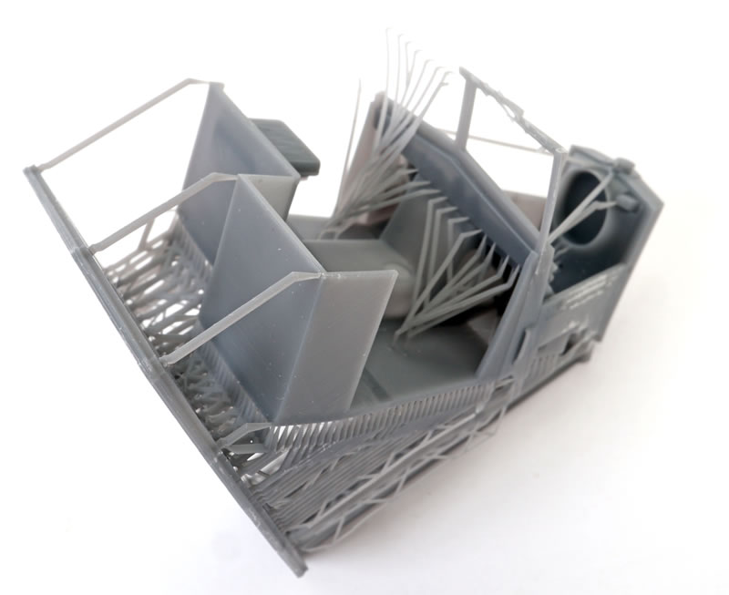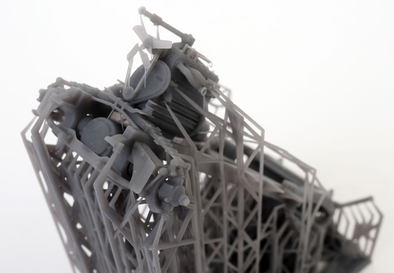 Clean-up will be quite straightforward with parts attached to a fine network of supports that taper to almost hair-width contact points. There are dozens, if not hundreds, of these to remove, but a sharp hobby knife will make short work of the task.