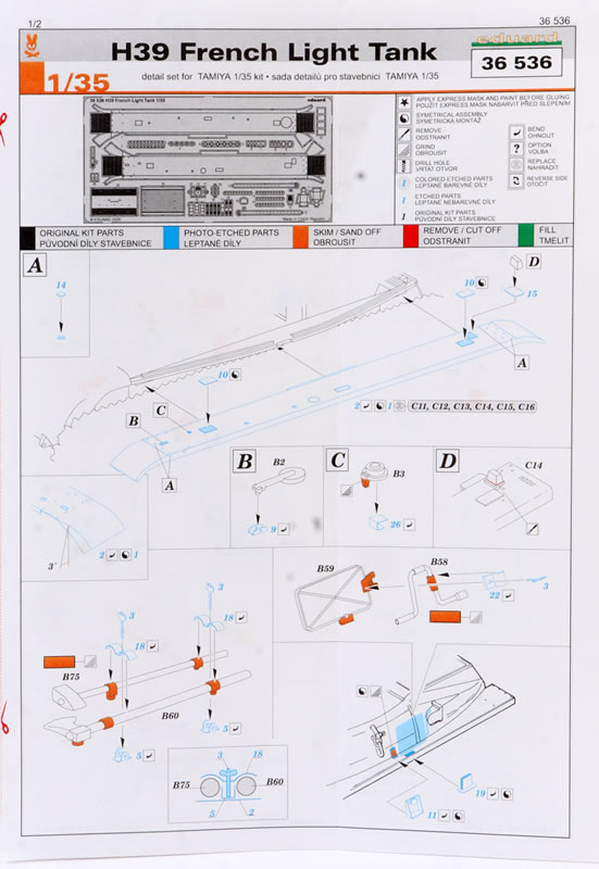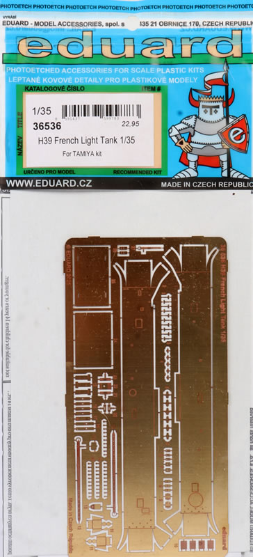 | Stock Number, Description and Price | Eduard Item No. 36536 - H39 French Light Tank Photo-Etched Detail Set for Tamiya USD$24.95 plus shipping available online from Eduard's online store. |