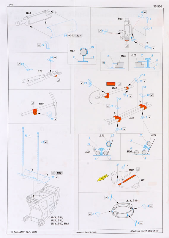 Parts replaced or enhanced include exhaust shields, tool clamps, straps, track guards and other small parts to scale-thickness.