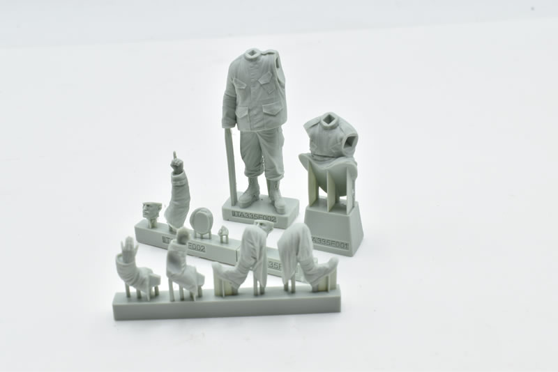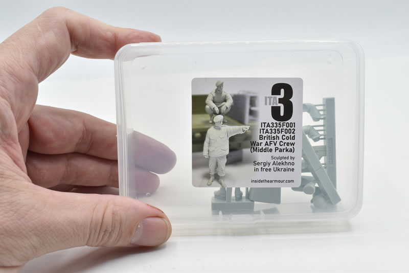 Rounding out the range are two superb 3D-printed figures depicting British Cold War-era soldiers typical of BOAR Stalwart crews. Sculpted by Ukrainian master figure modeller Sergiy Alekhno, the figures are marked “Works from Free Ukraine”. Figure ITAF001 is shown crouching with arms resting on his knees, while ITAF002 is standing and pointing to his left. Both are beautifully executed and full of character.