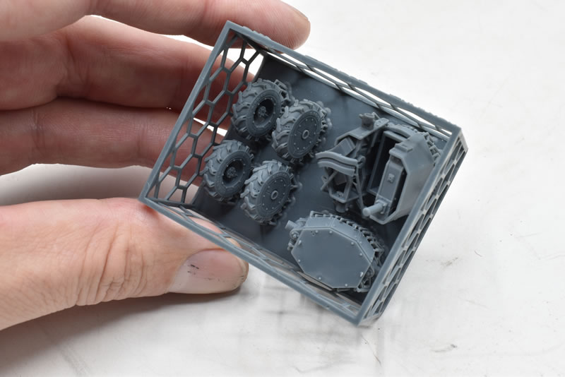 The other important note about ScaleX 3d printed wheels and drones is that they are available in 1:35 and 1:72 scale. In terms of clean-up, these pieces pop off their print frames with total ease and require little to no clean-up, a major advantage over traditional resin moulded parts.