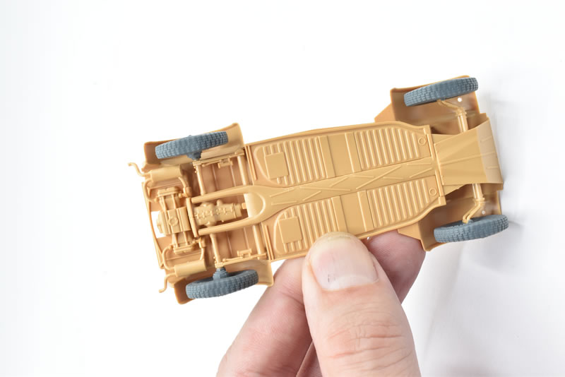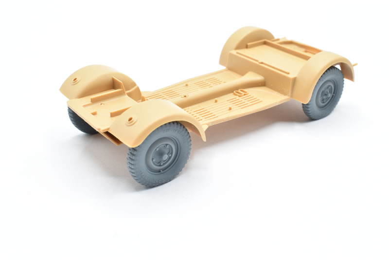 Next, we tried the Kubelwagon Type 82 sagged wheels on a Tamiya Kubelwagon, and there were no fit issues, and the effect on the extra realism of the model is quite clear.
