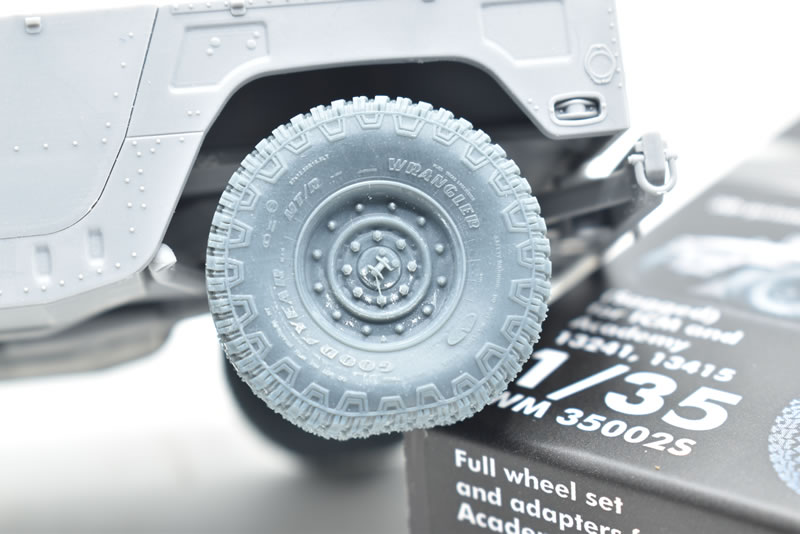 The level of detail on these wheel and Liut kits is really outstanding, right down to the subtle text of the tyres. It is also worth noting that the wheels are offered in two versions standard and sagged. In the opinion of the reviewer, the sagged tires and wheels are super realistic. We test fitted the sagged Humvee wheels to an ICM Humvee and found the fit without fault.