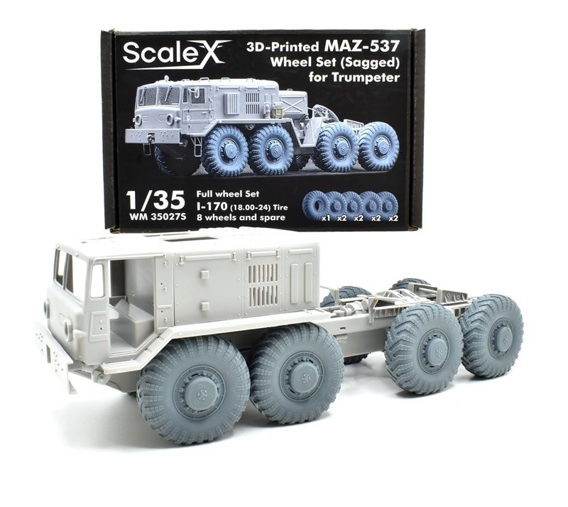 The Trumpeter kits have been on the market for some time, available in both 1:35 and 1:72 scales, and ScaleX now provides detailed replacement wheel sets for each. The main weakness of the Trumpeter MAZ-537 kits has always been the tyres and wheels.