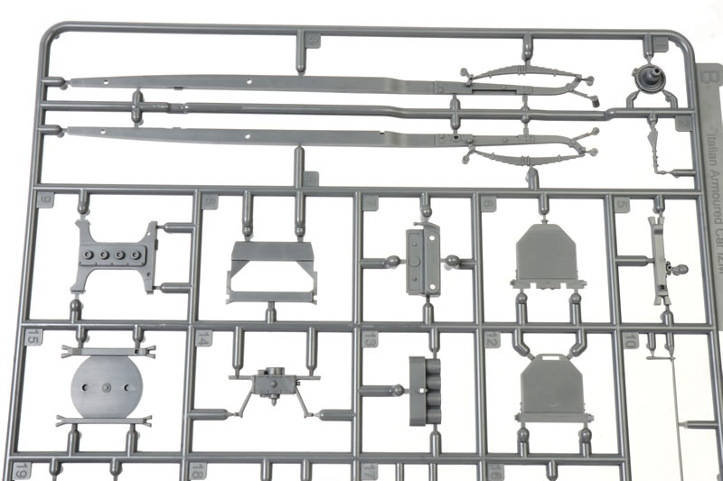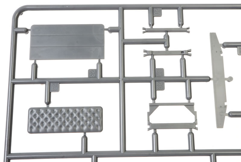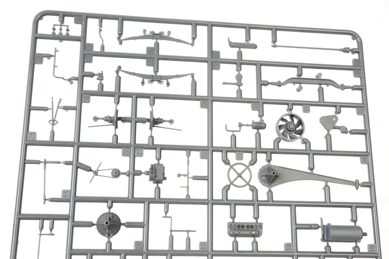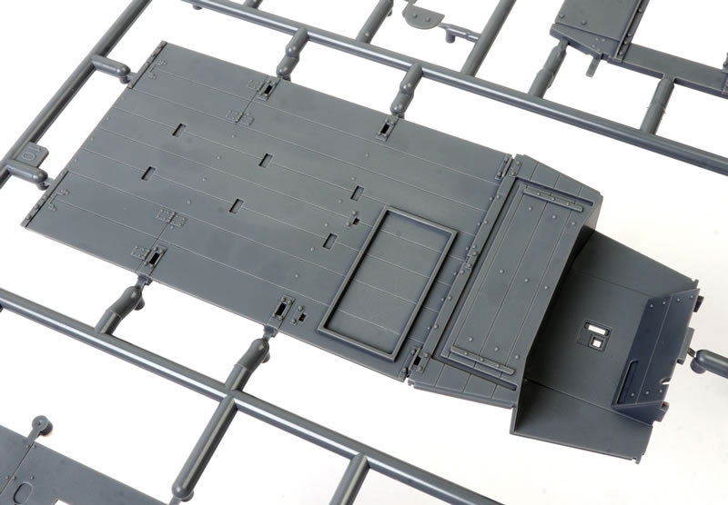 The armoured body is broken down into separate side, front and rear panels, with a poseable rear hatch provided as a separate part. Inside, the modeller is treated to a petrol tank, structural frames and wooden bench seating. The engine compartment also features separate armour panels on the front and sides.