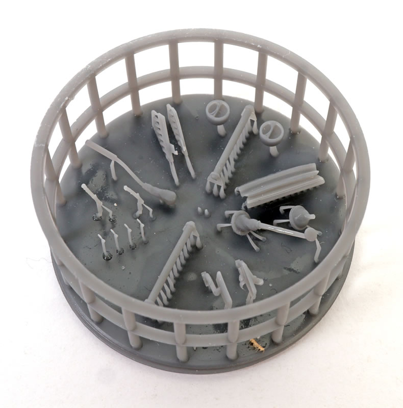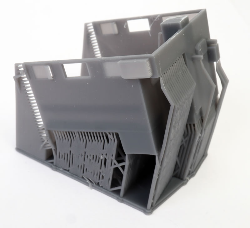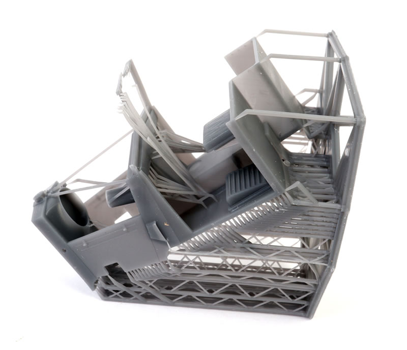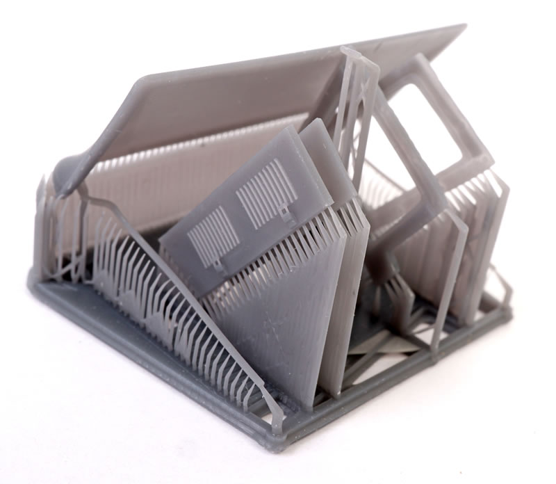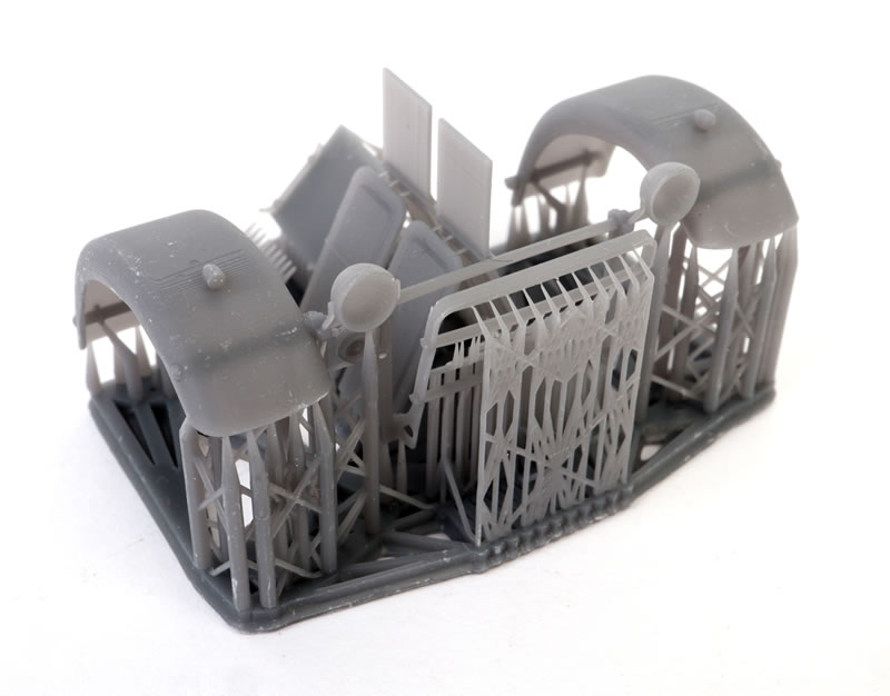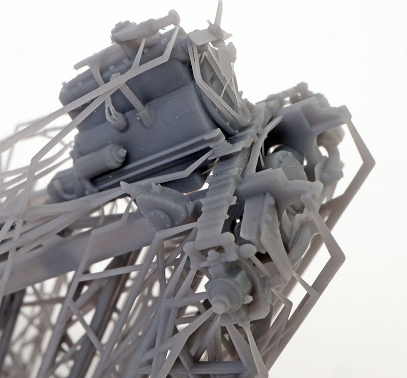 Clean-up will be quite straightforward with parts attached to a fine network of supports that taper to almost hair-width contact points. There are dozens, if not hundreds, of these to remove, but a sharp hobby knife will make short work of the task.