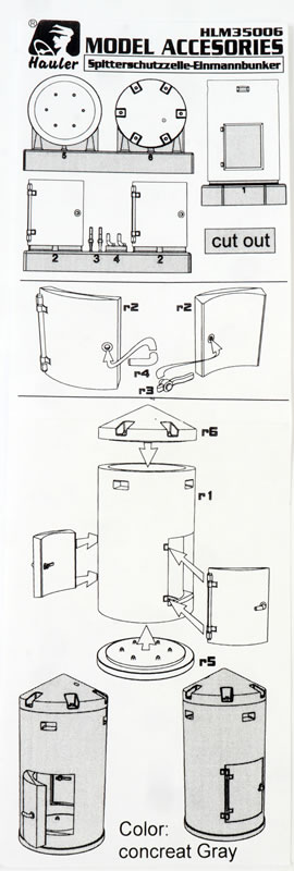 | Stock Number and Description | Hauler Kit No. HLM35006 - Spitterschutzzelle-Einmannbunker |