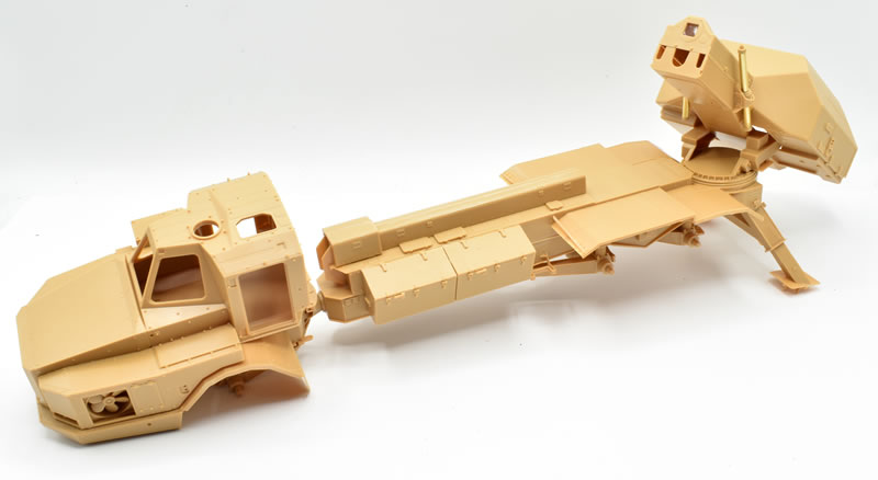 It’s no surprise, then, that HobbyBoss has tackled this ultra-modern subject. The kit itself assembles in a straightforward manner but is somewhat basic in places. The driver’s cab, for example, lacks internal detail—something easily verified with even a brief search of reference material. More problematic are areas left open and exposed, particularly on the underside of the automated ammunition feed unit when the gun is elevated. Similarly, the pivoting arms for the gun are hollow when posed in the firing position. Given the size and price of the kit, these omissions are disappointing and would have been simple enough to address.