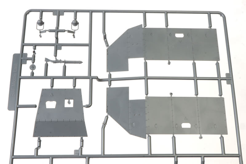 Four RAF Middle East marking options are supplied: three vehicles in overall Sand and one Armoured Tender finished in overall Green.